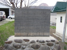 | 昭和新山の前に立つ記念碑 | |