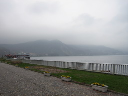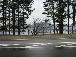 | どんより空の洞爺湖、小雨もぱらつく。 | |