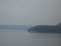 | サンパレスから眺める洞爺湖の遊覧船。どんより空である。 | |